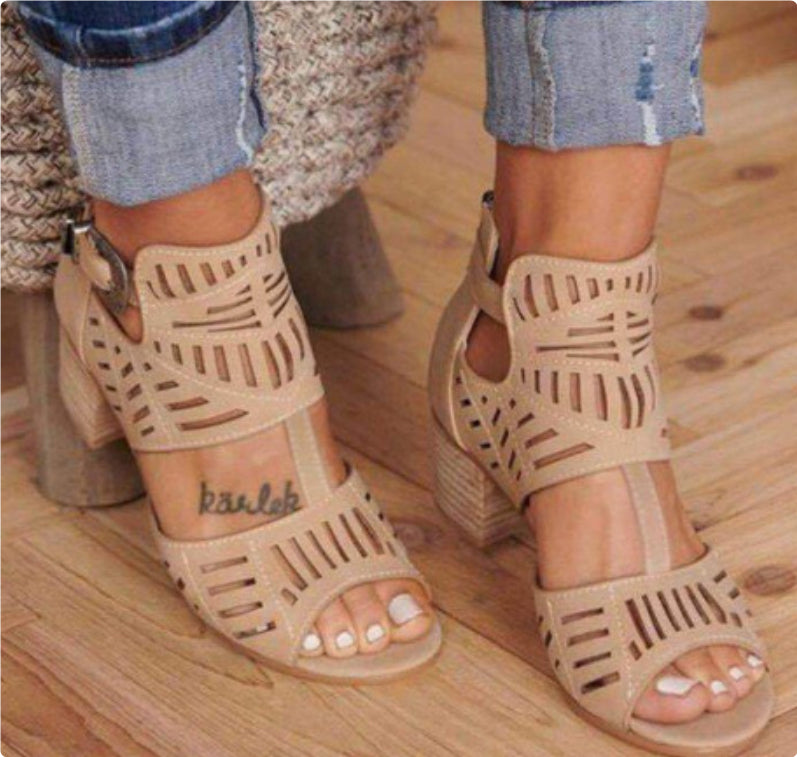 Sandale Cristina cu toc pătrat - Stil cu cataramă ajurata