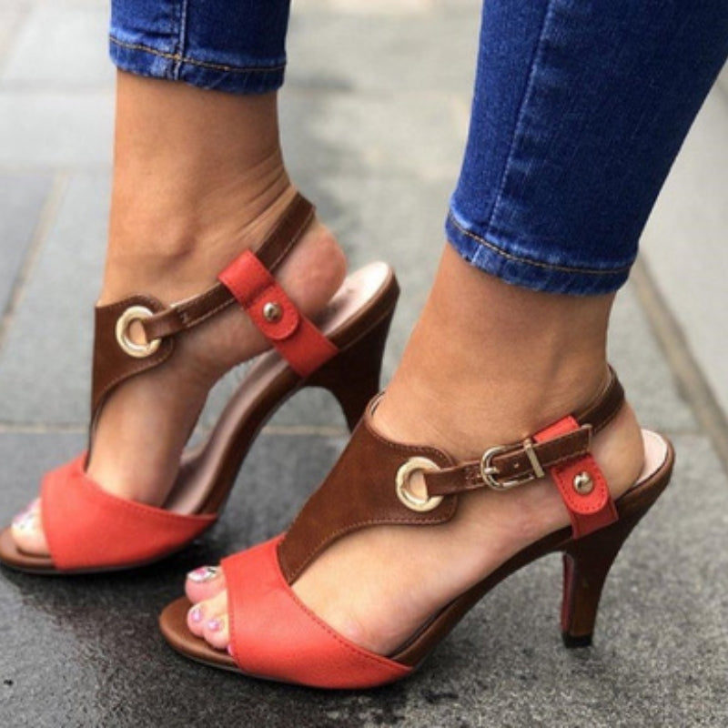 Sandale Cristina cu cataramă și vârf deschis - Toc mediu color block