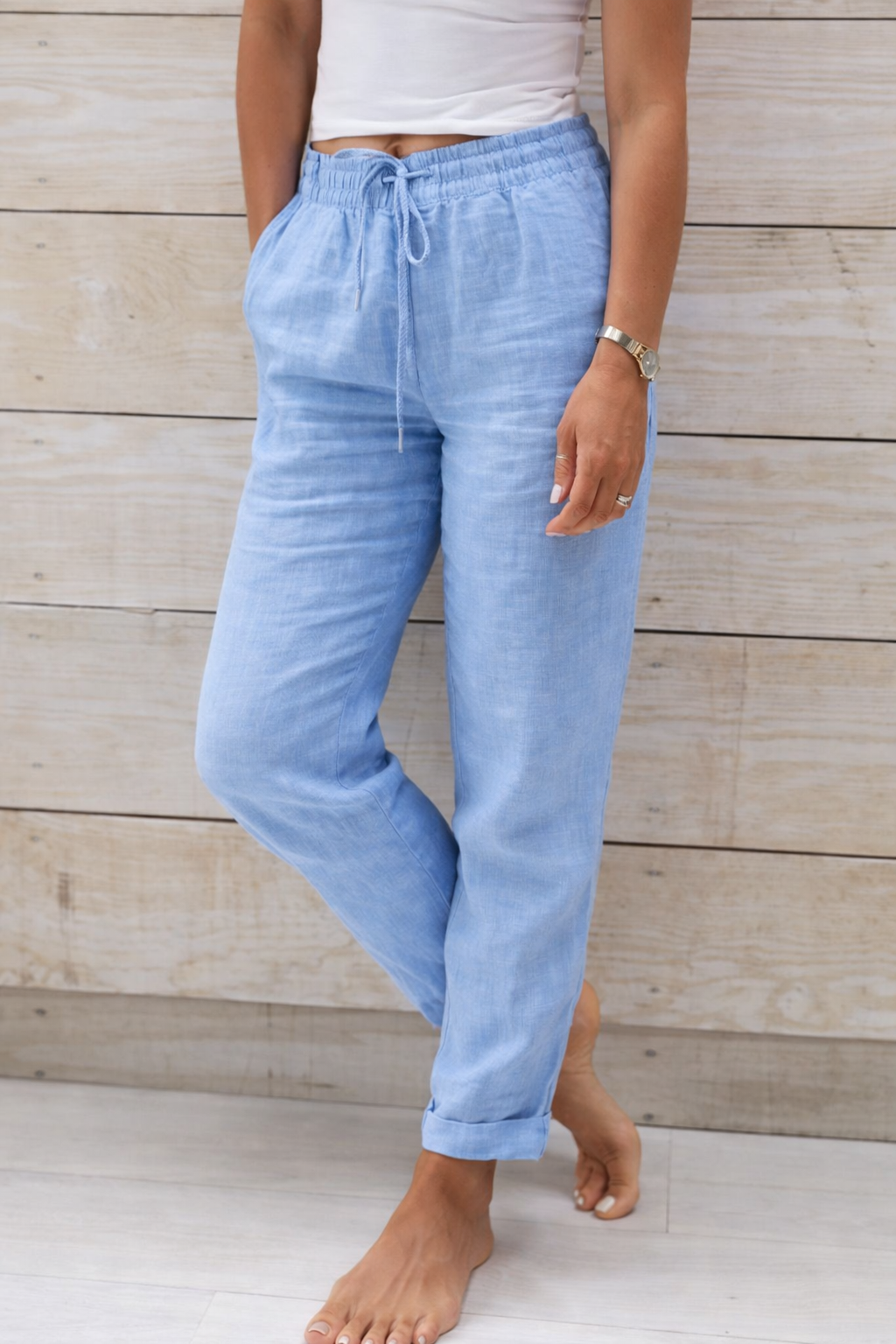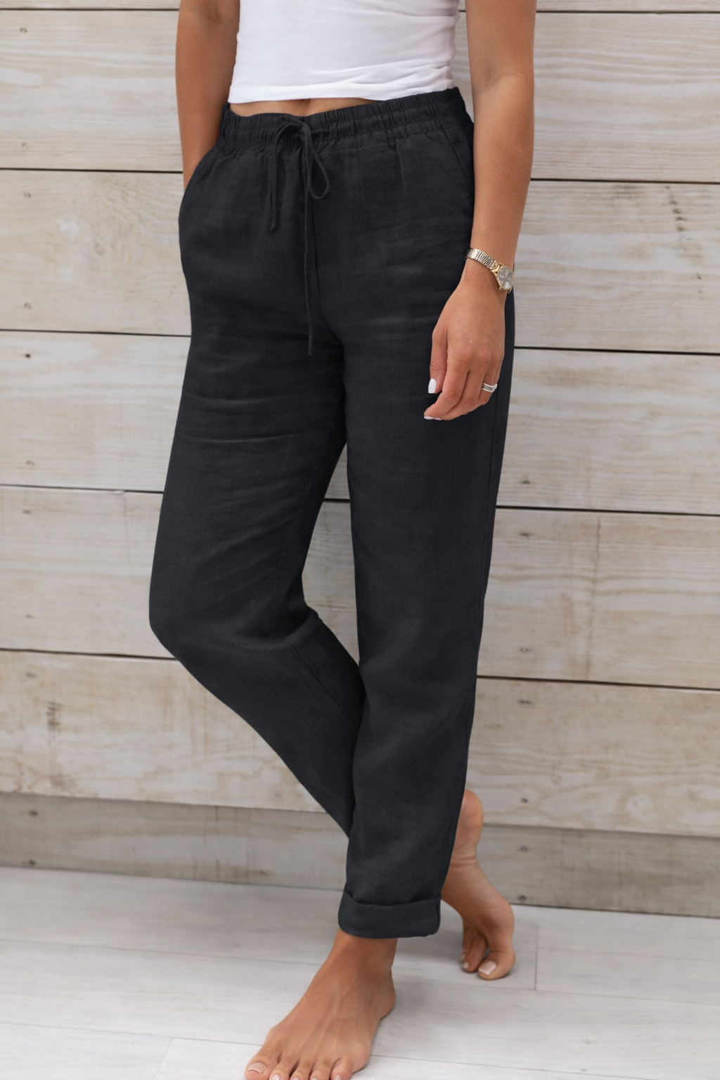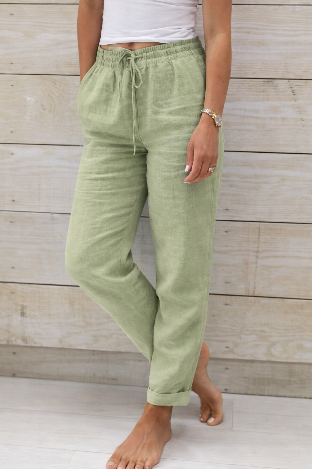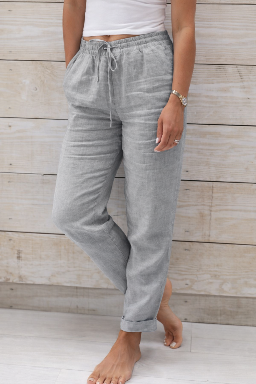 Pantaloni Cristina din bumbac și cânepă - Talie elastică confortabilă