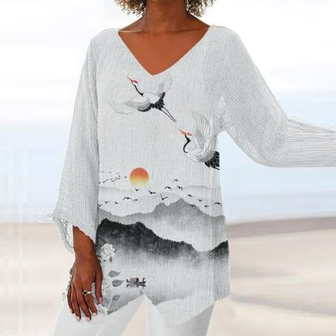 Top Cristina cu imprimeu 3D și decolteu în V - Inspirat din natură
