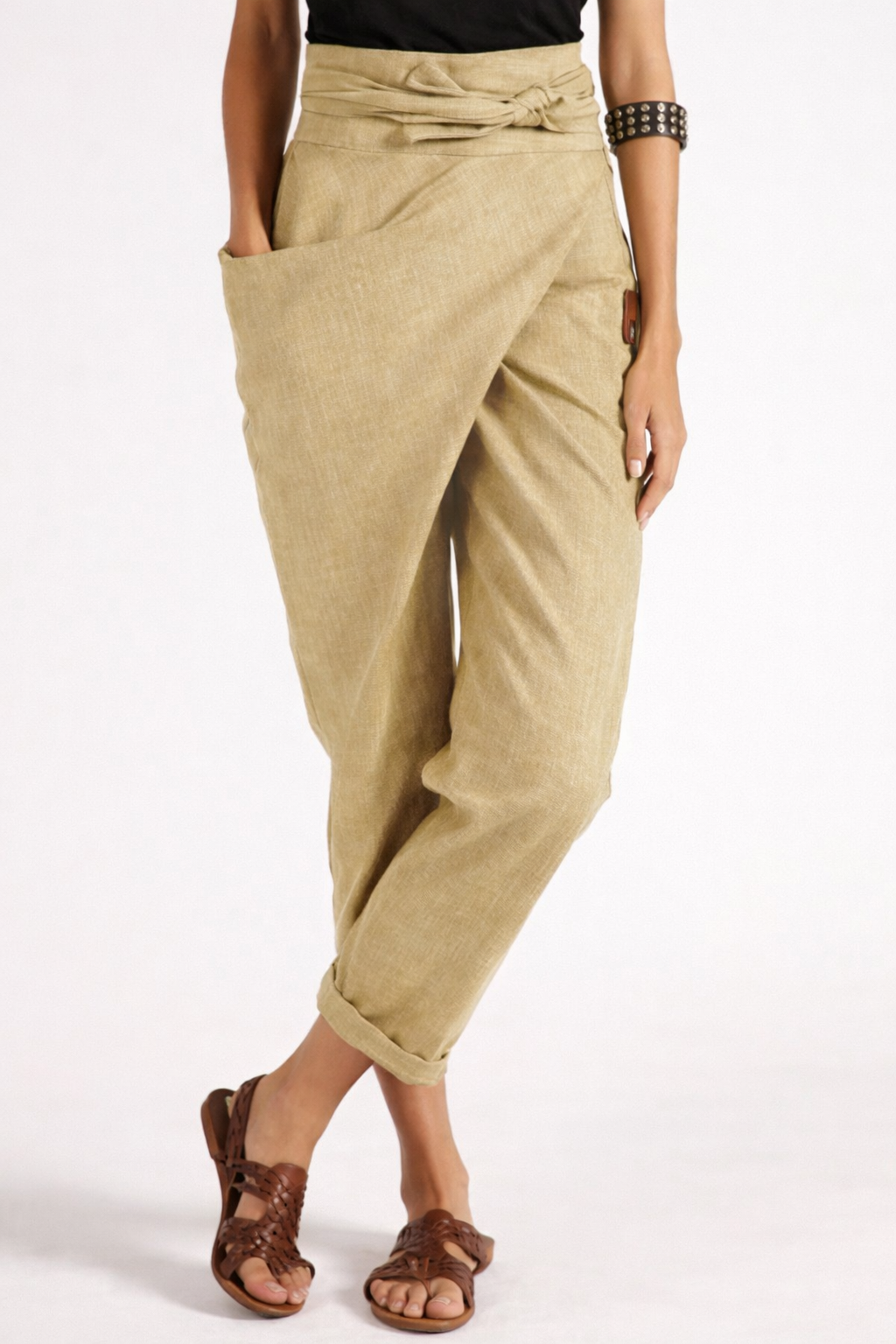 Pantaloni Cristina crop din in - Stil modern, înfășurat