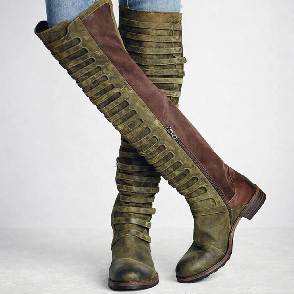 Cizme până la genunchi din piele întoarsă Cristina - Fermoar lateral