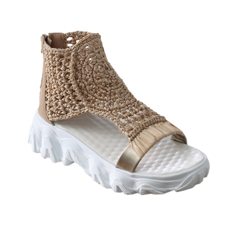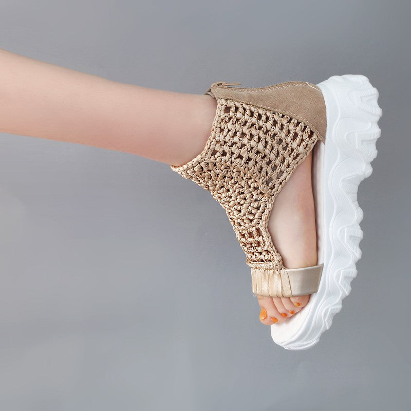 Lasă-te captivat de măiestrie artistică cu sandalele din lână tricotată de la Cristina, unde fiecare detaliu reflectă pasiunea pentru design inovator și confort de durată. Inspirate de măiestria atemporală, aceste sandale sunt realizate meticulos dintr-o parte superioară unică din lână tricotată, combinând PU de ultimă generație și bumbac premium pentru o senzație respirabilă și luxoasă. Talpa groasă și durabilă și platforma amortizată oferă un suport de durată, perfect pentru un stil impecabil pe tot parcursul zilei. Disponibile într-o varietate de culori demne de Pinterest, aceste sandale sunt concepute pentru a-ți stimula creativitatea și a-ți îmbunătăți aspectul pentru orice ocazie.