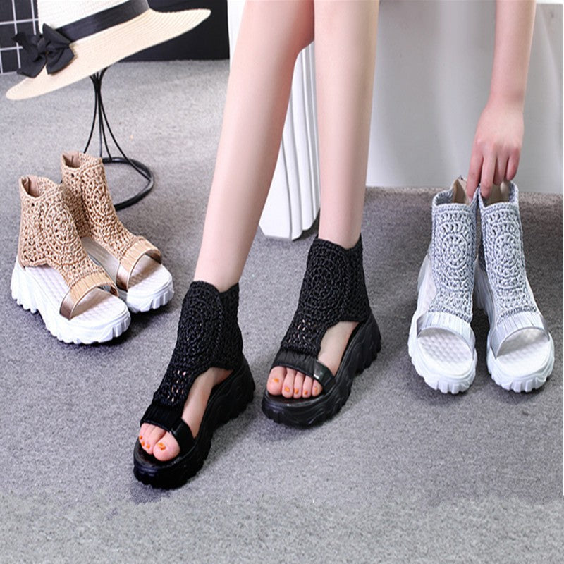 Sandale Cristina din lână tricotată - Talpă groasă și confortabilă