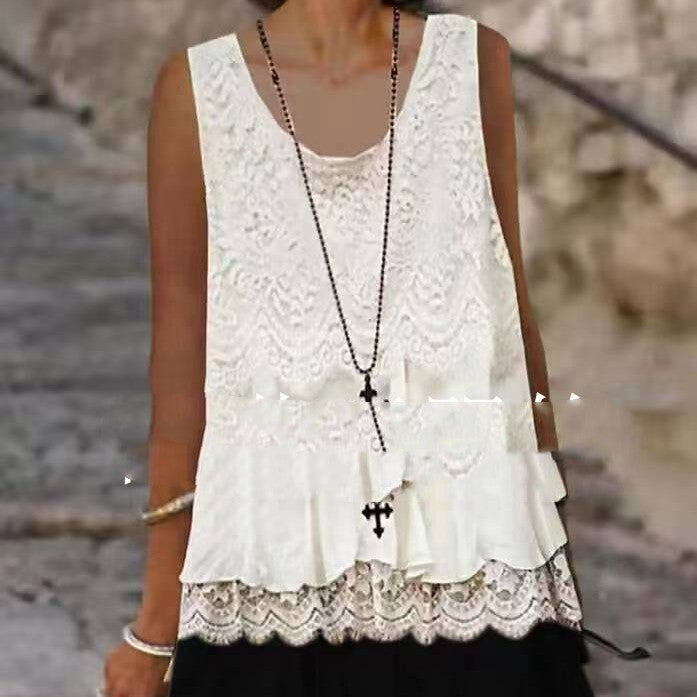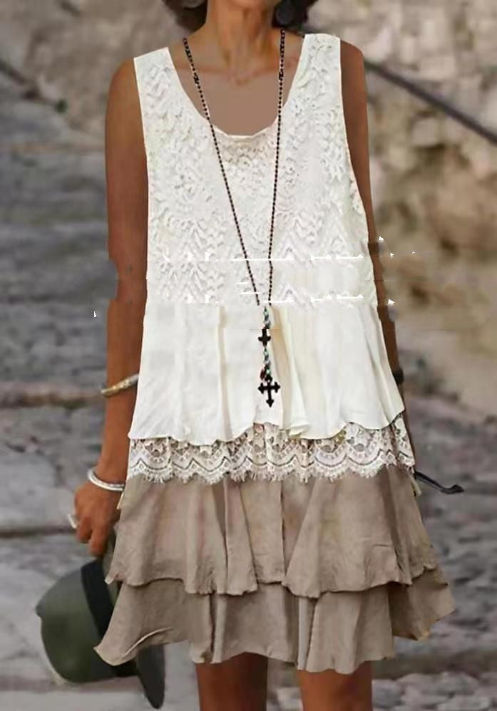 Rochie Cristina fără mâneci din dantelă – Suprapunere elegantă