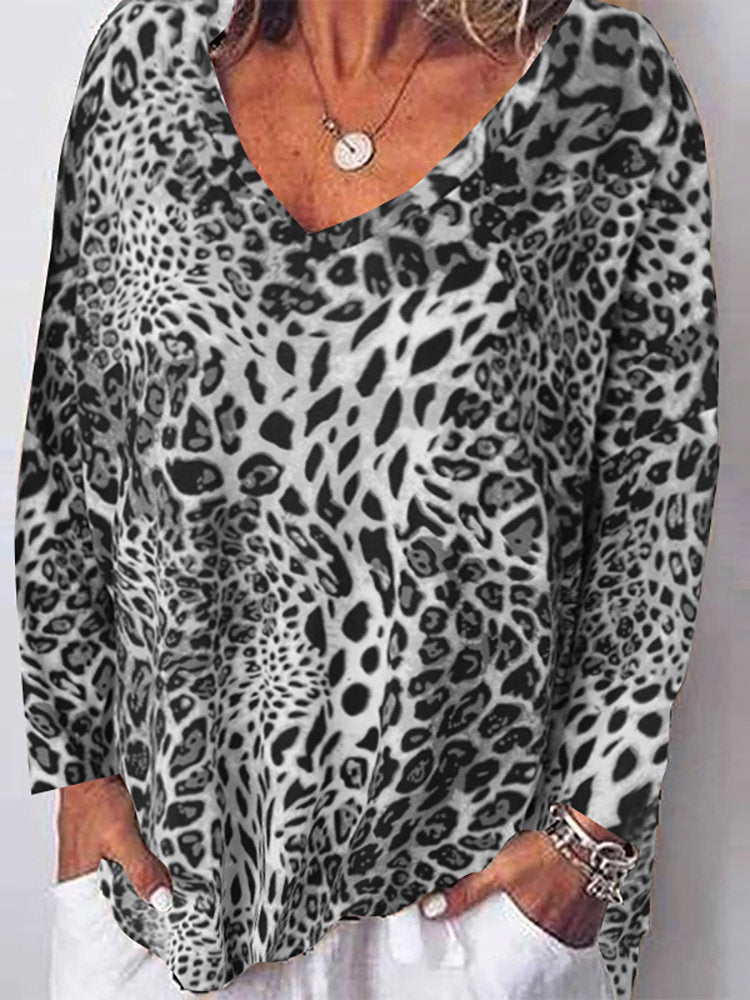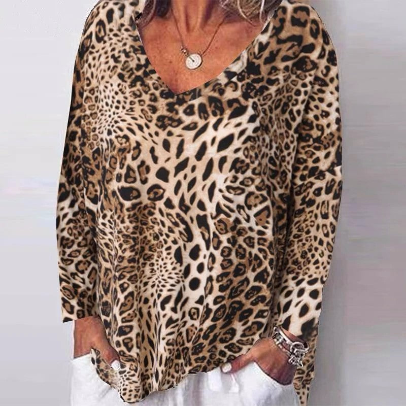 Top cu imprimeu leopard și decolteu în V de Cristina Gore