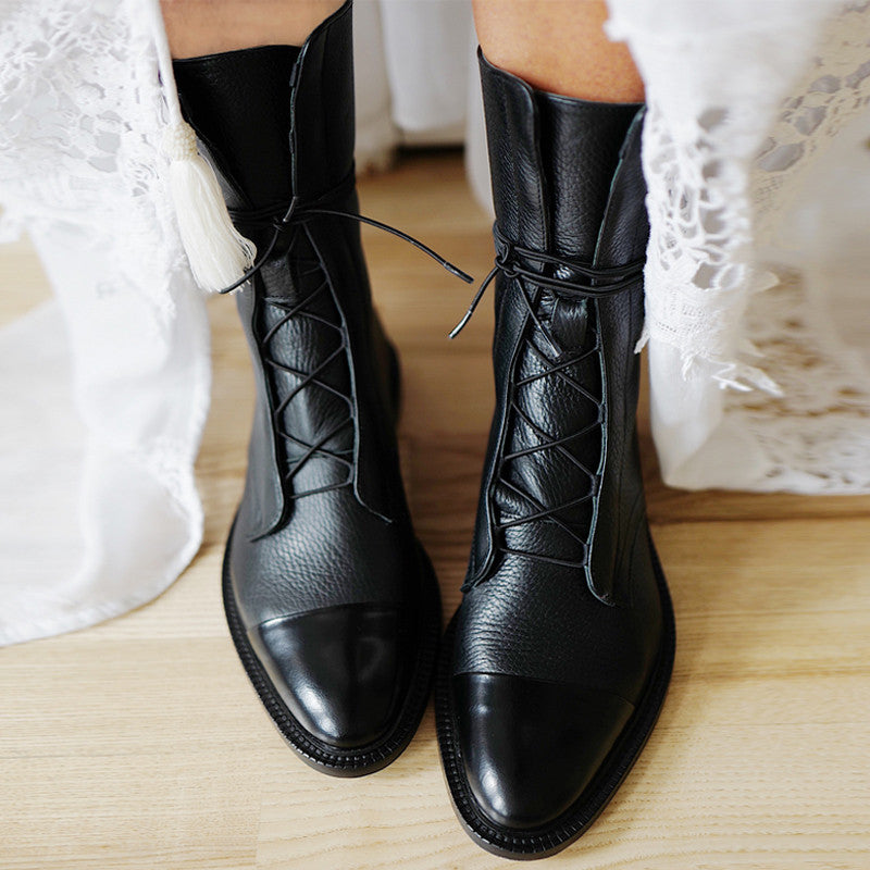 Descoperiți eleganța europeană atemporală cu botinele negre cu șireturi Cristina. Create cu grijă, aceste botine combină inspirația clasică a locomotivelor cu confortul modern, pentru femeile care apreciază calitatea și stilul demn de Pinterest. Cristina, renumită pentru abordarea sa artistică în materie de încălțăminte, prezintă o ghetă versatilă care poate fi purtată zi sau seară, perfectă pentru a adăuga o notă de inspirație garderobei dumneavoastră.