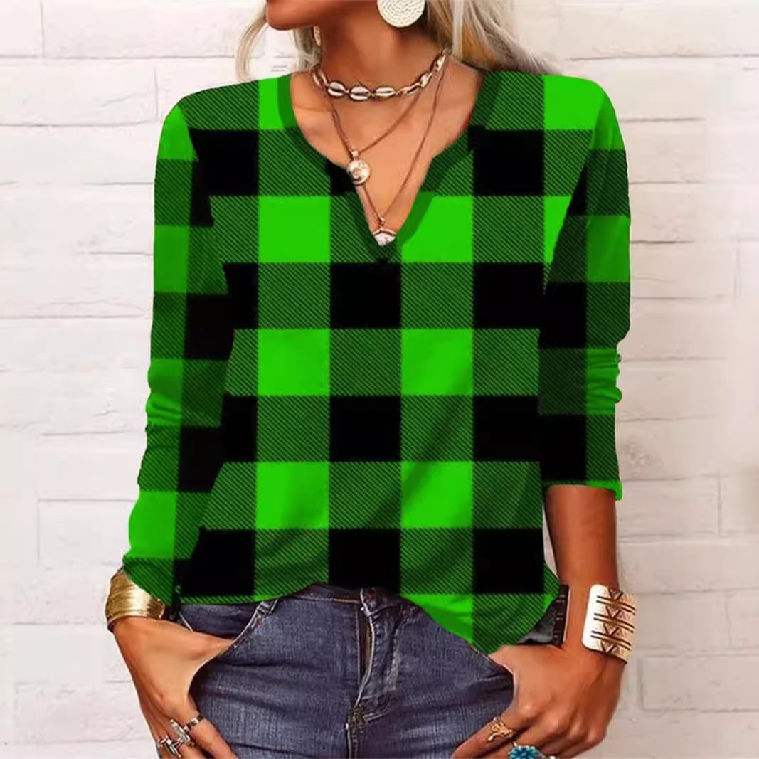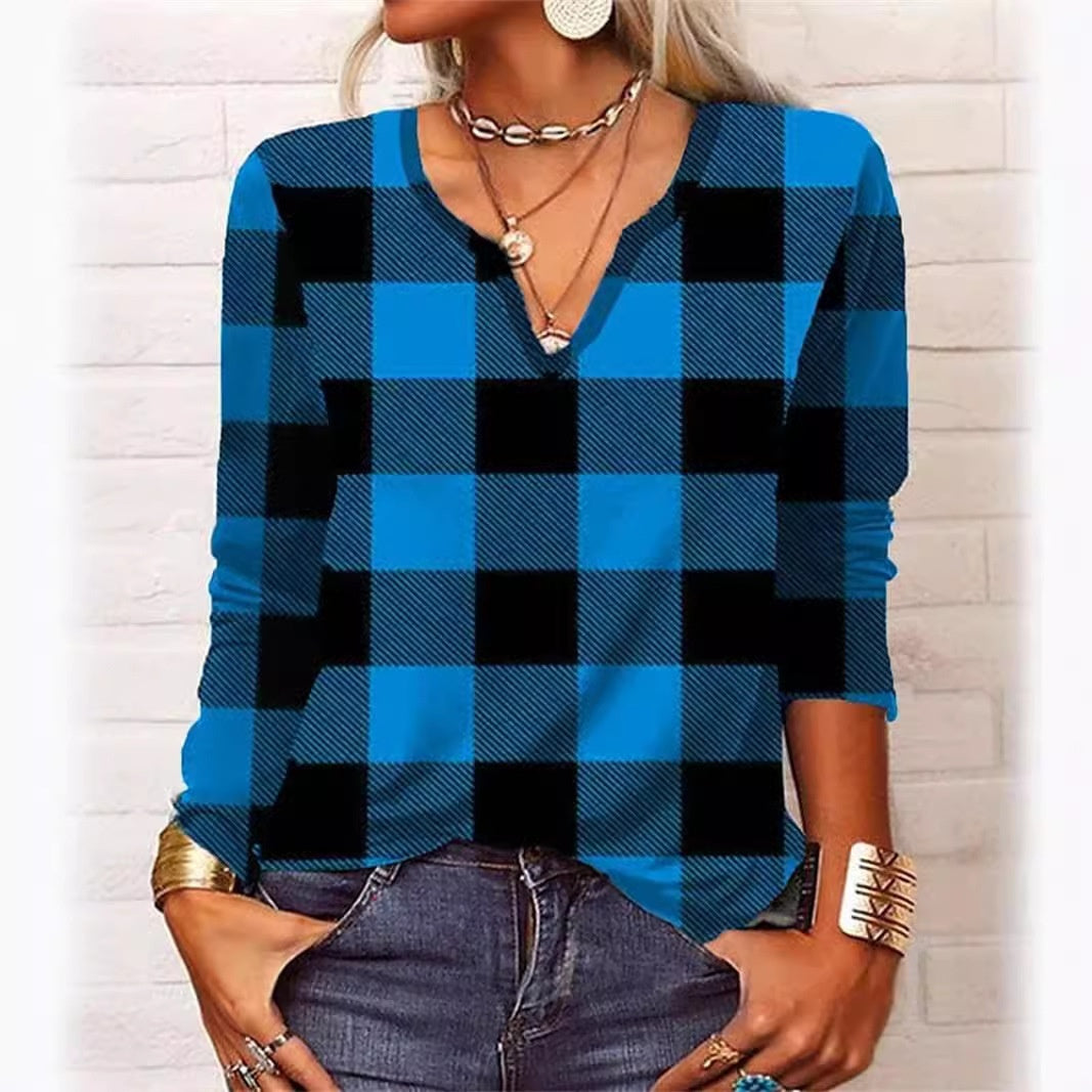 Top în carouri cu decolteu în V și mânecă lungă de Cristina Gore