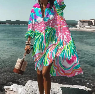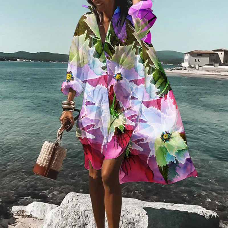Bluză de plajă cu imprimeu Cristina - Vestă cu mânecă lungă