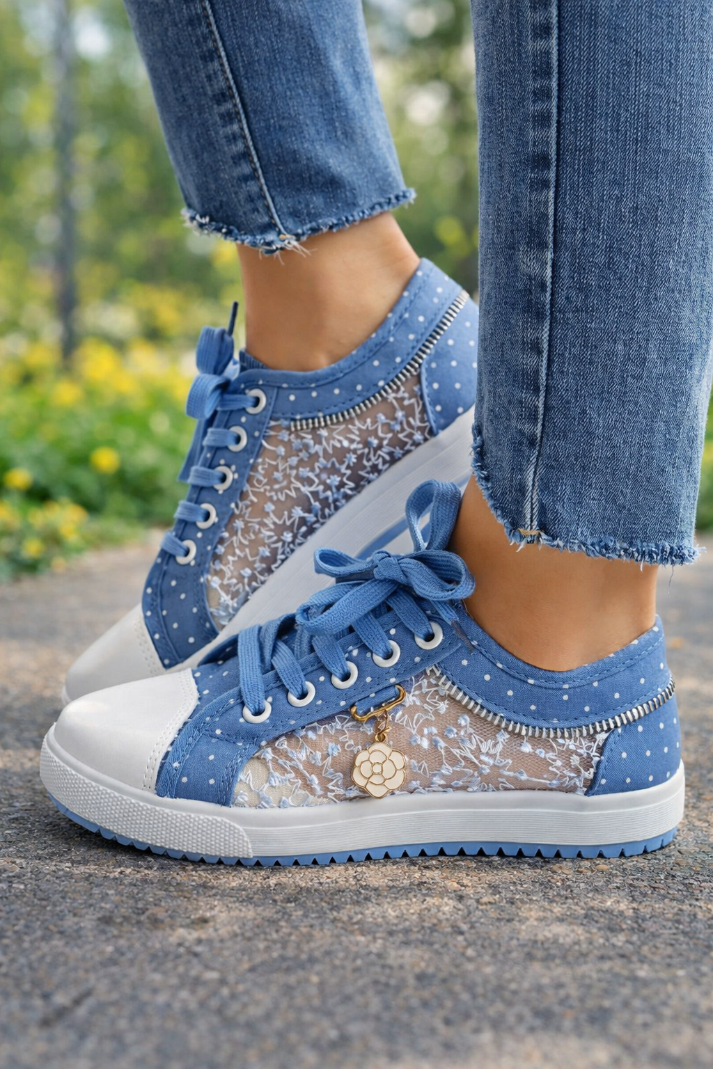 Teniși Cristina din pânză și plasă - Stil confortabil cu șireturi