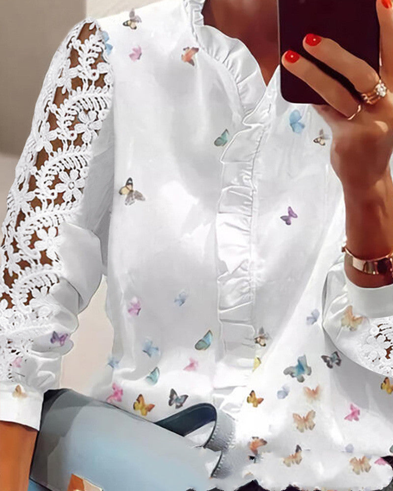 Cămașă din șifon cu dantelă Cristina - Inspirație fluture