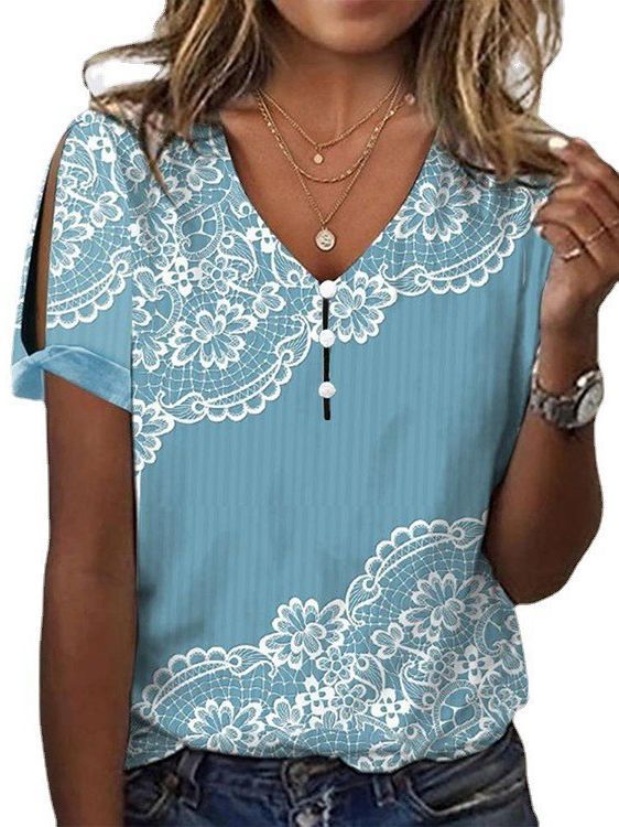 - Croială relaxată și mâneci scurte clasice pentru confort suprem