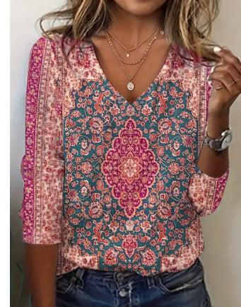 Top Cristina cu imprimeu etnic - Stil artistic de vară