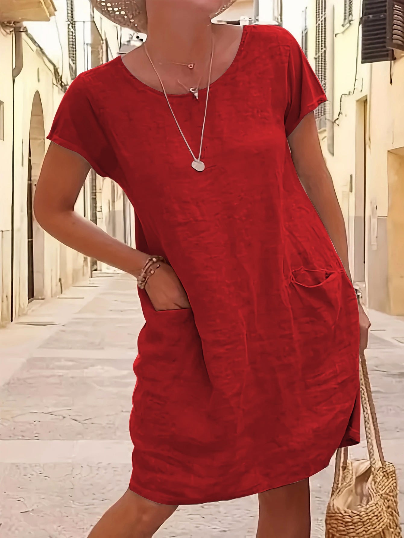 Rochie Cristina din bumbac și in - Buzunare și mâneci scurte