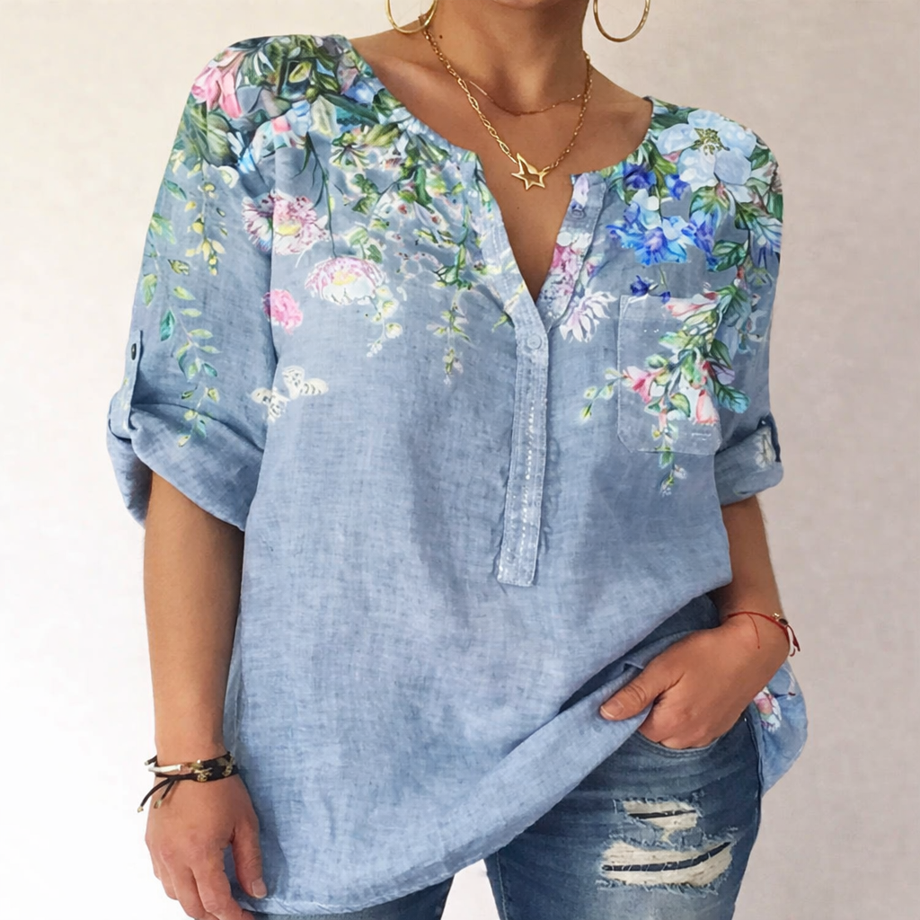 Cristina Gore vă oferă o piesă vestimentară de vară inspirată de Pinterest, creată pentru femeile care apreciază confortul și stilul natural. Concepută având în vedere versatilitatea de zi cu zi, această bluză lejeră este confecționată dintr-un amestec premium de bumbac, pentru o croială perfectă care respiră și se mișcă odată cu tine. Modelul unic imprimat și decolteul în V măgulitor o fac ușor de îmbrăcat elegant sau casual, asigurându-vă că arătați încrezătoare și vă simțiți confortabil de dimineața până seara. Dedicația lui Cristina Gore pentru un design atent făcut înseamnă că această bluză se potrivește tuturor formelor și mărimilor, făcând-o un element esențial în garderobă pentru orice sezon.