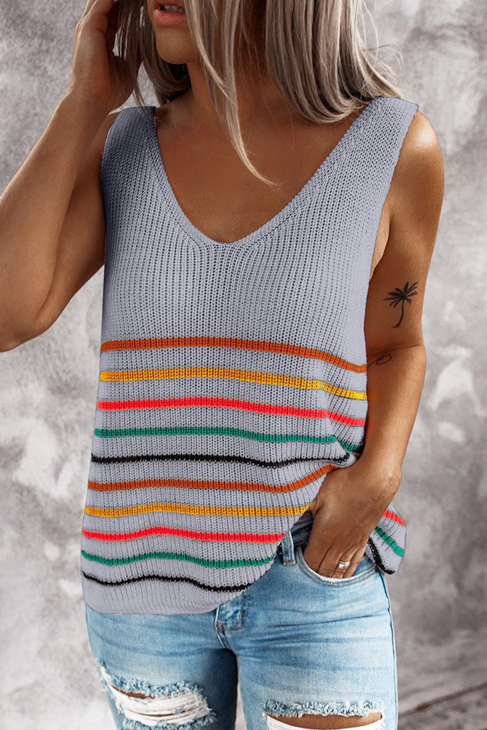 Vestă tricotată cu dungi multicolore de Cristina Gore