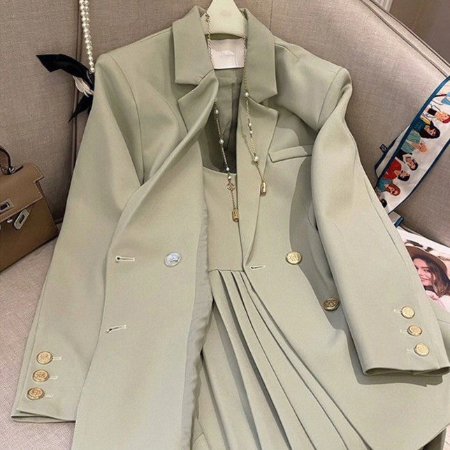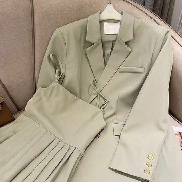 - Set din două piese: sacou și rochie tip șorț plisată