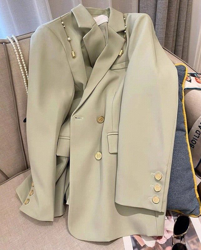 - Sacou cu mânecă lungă, guler clasic și nasturi aurii