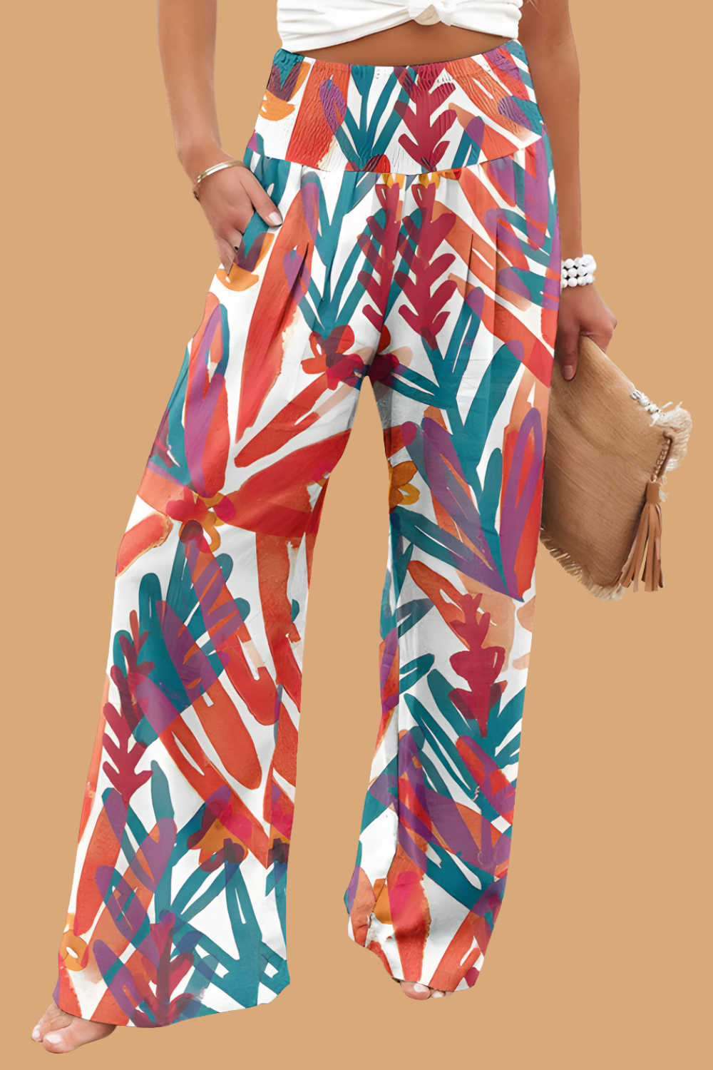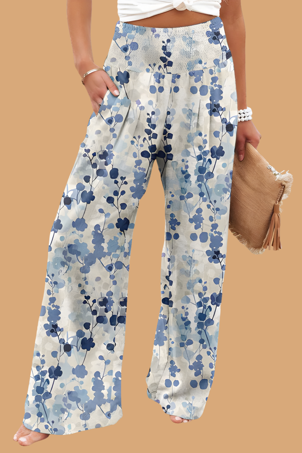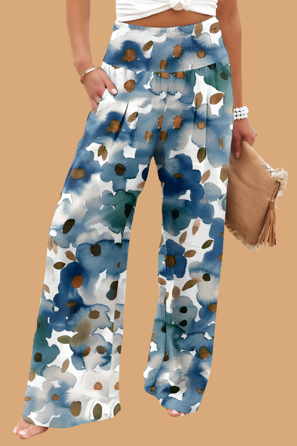 Pantaloni Cristina cu croi larg - Amestec de in imprimat