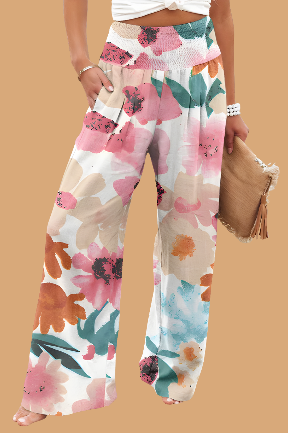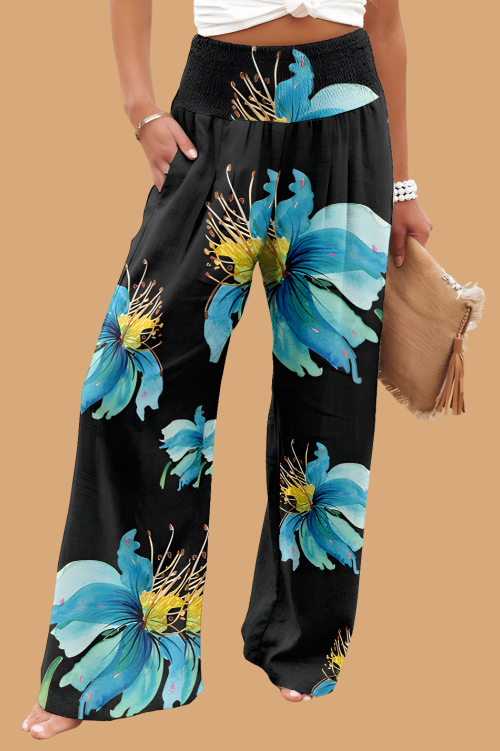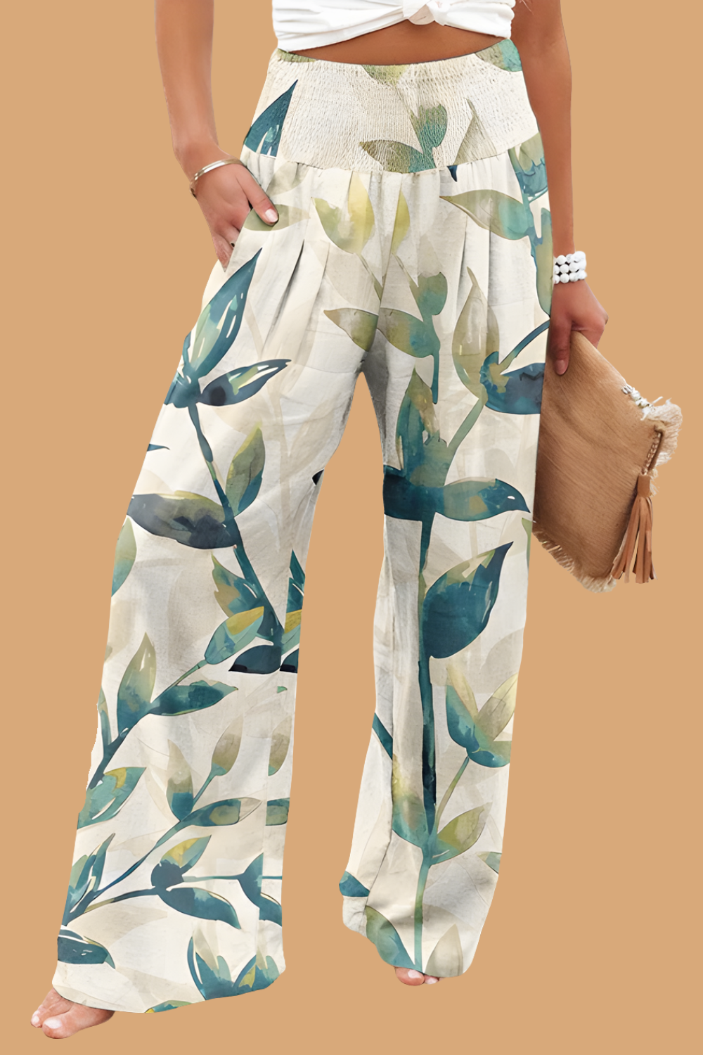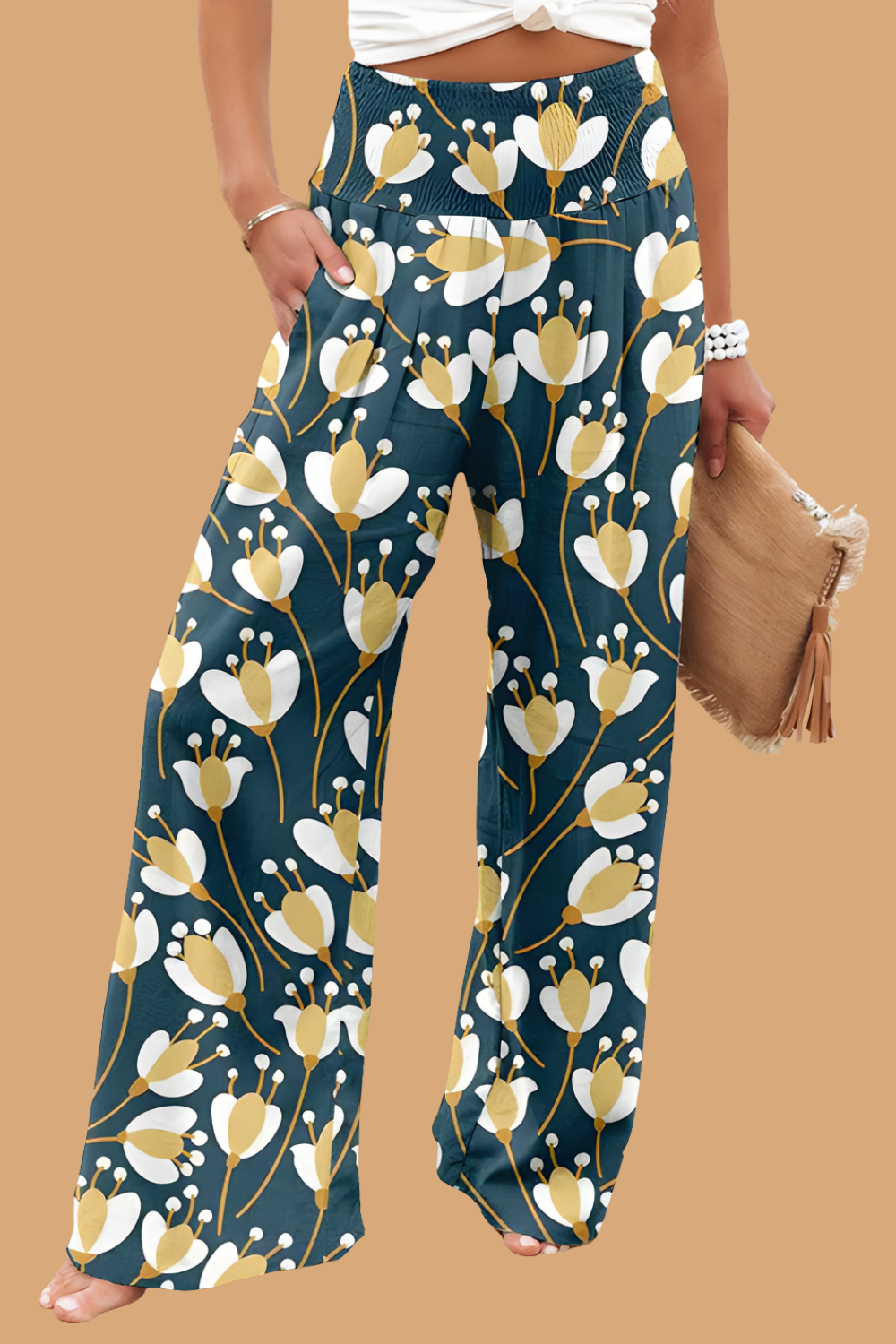 Pantaloni Cristina cu croi larg - Amestec de in imprimat