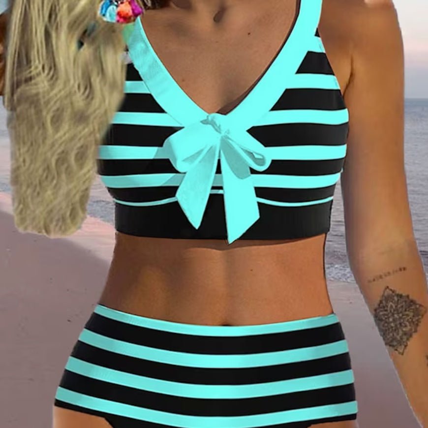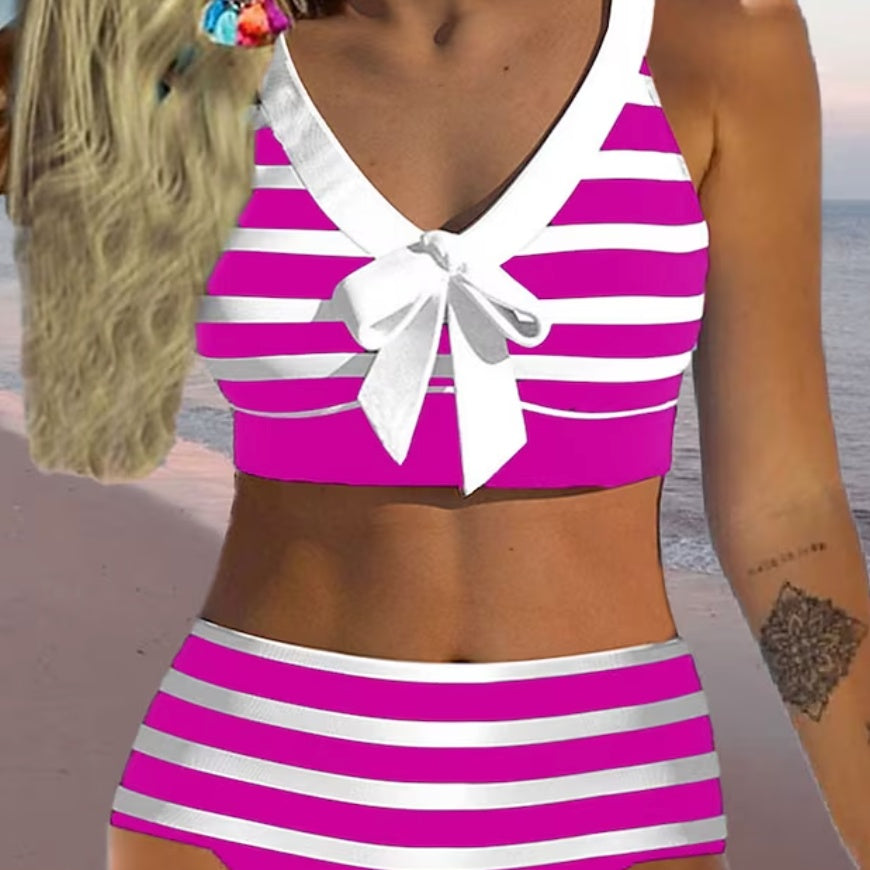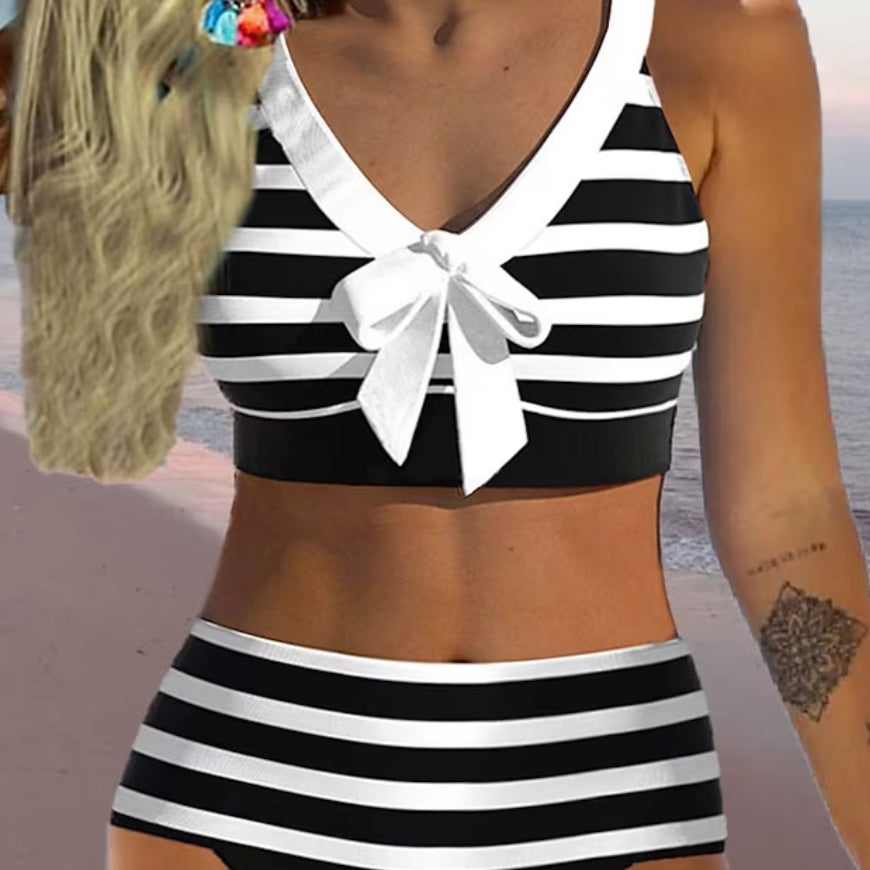 Bikini cu talie înaltă și dungi Cristina – Din nou detaliu