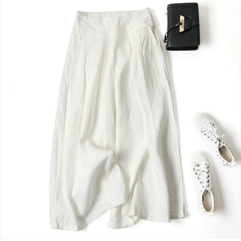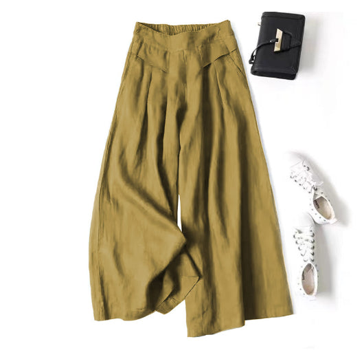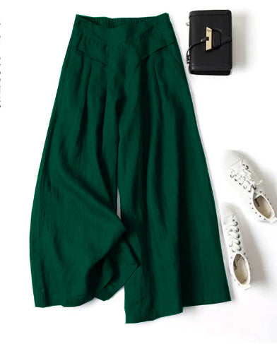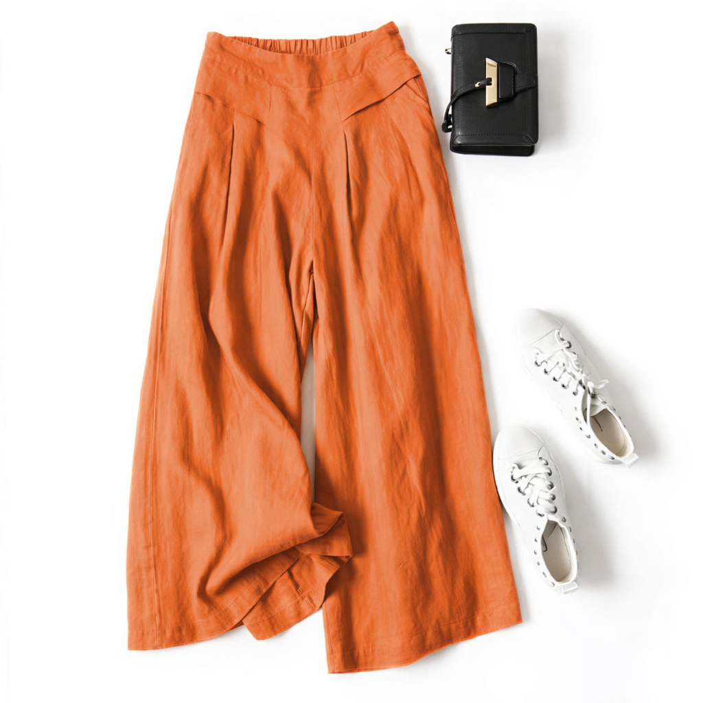 Pantaloni Cristina cu talie înaltă și croială largă - Bumbac și in