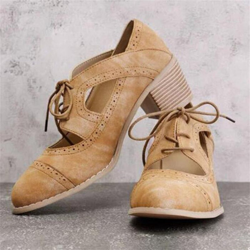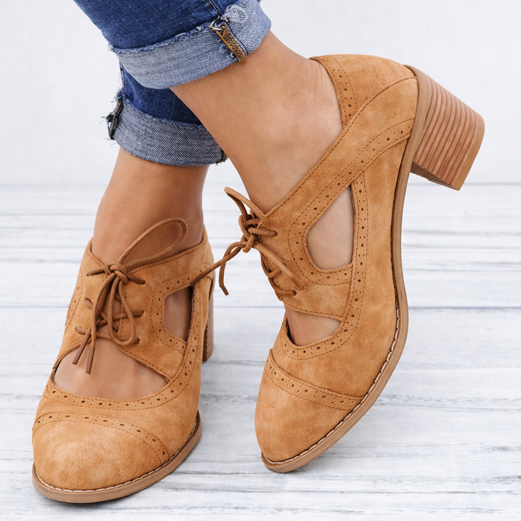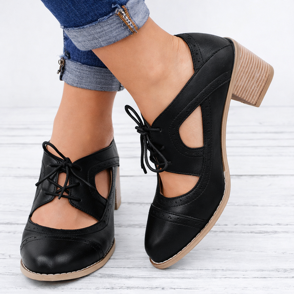 Sandale Cristina cu șireturi și tocuri decupate - Stil vintage