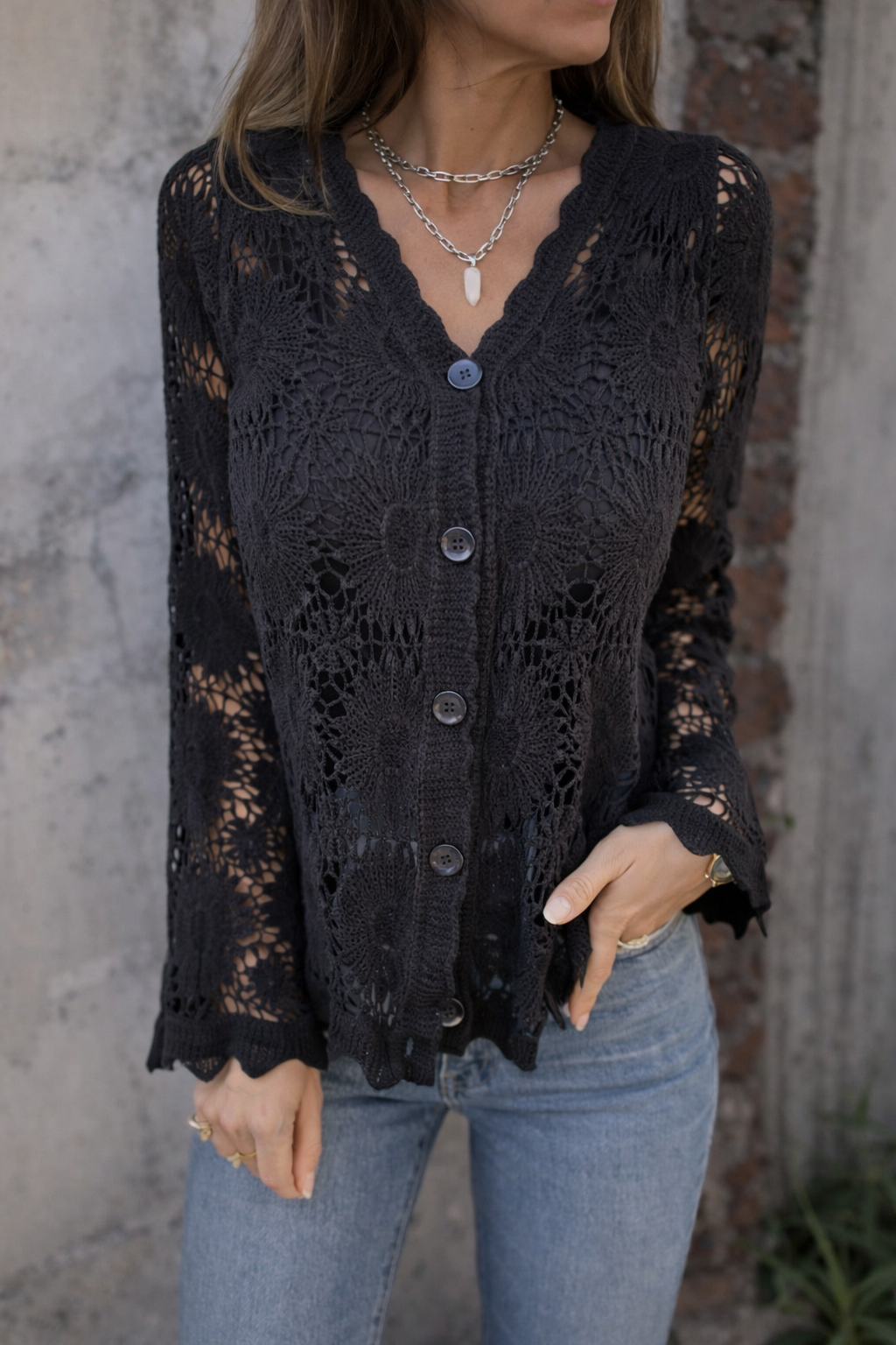 Top Cristina din dantelă cu decolteu în V - Mâneci lungi ajurate