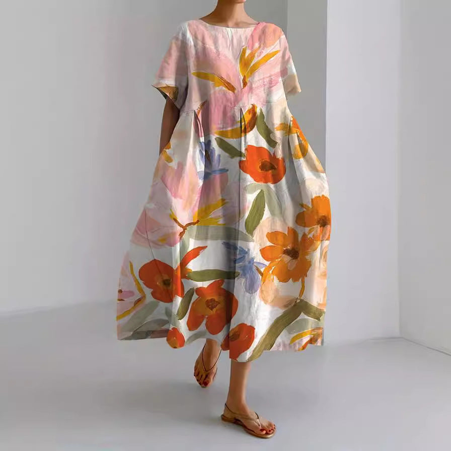 Rochie maxi Cristina cu imprimeu digital 3D și imprimeu confortabil
