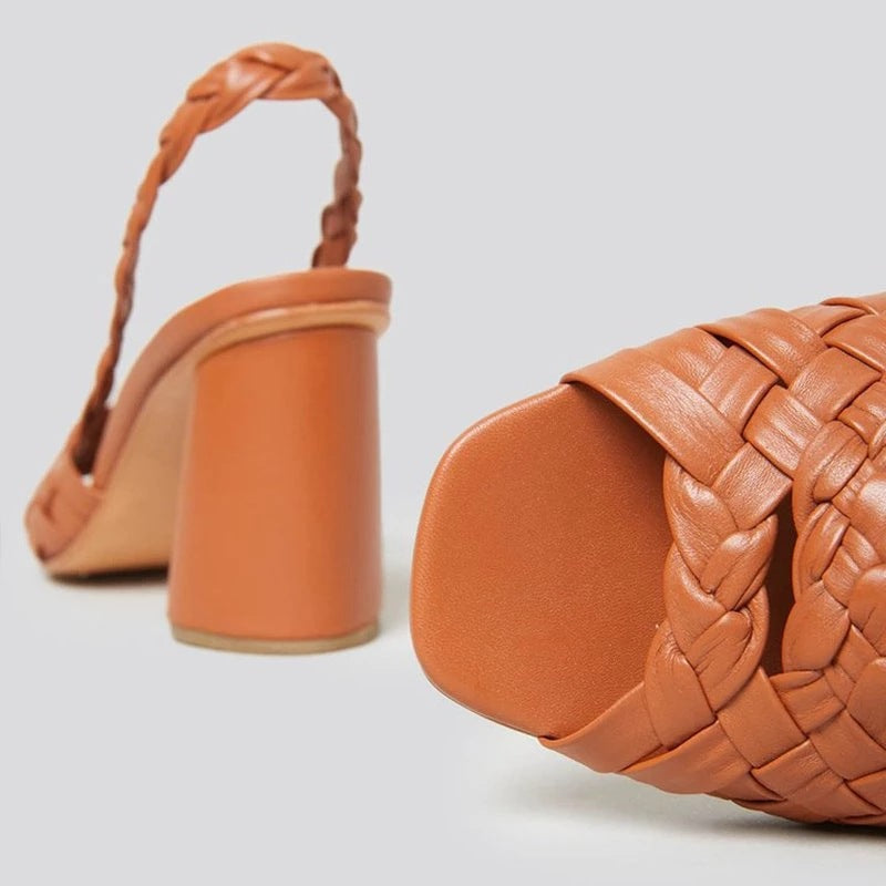 Sandale cu toc Cristina - Model din răchită cu vârful deschis
