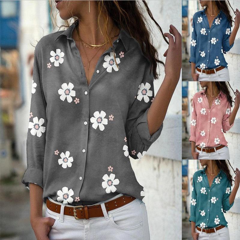 Cămașă Cristina cu imprimeu floral - Mâneci lungi, guler crestat
