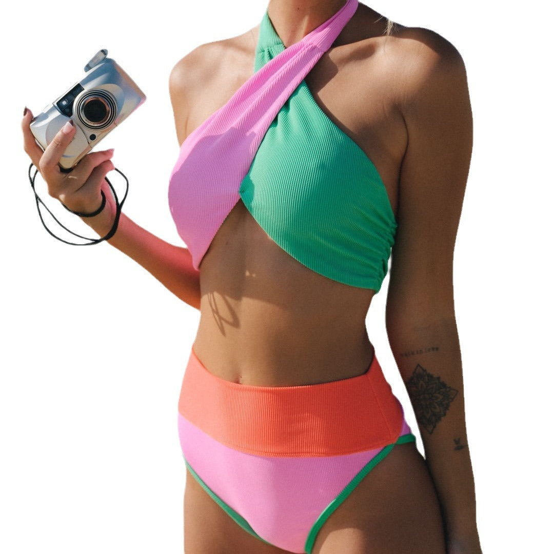 Costume de baie Cristina Color Block - talie înaltă și spate încrucișat