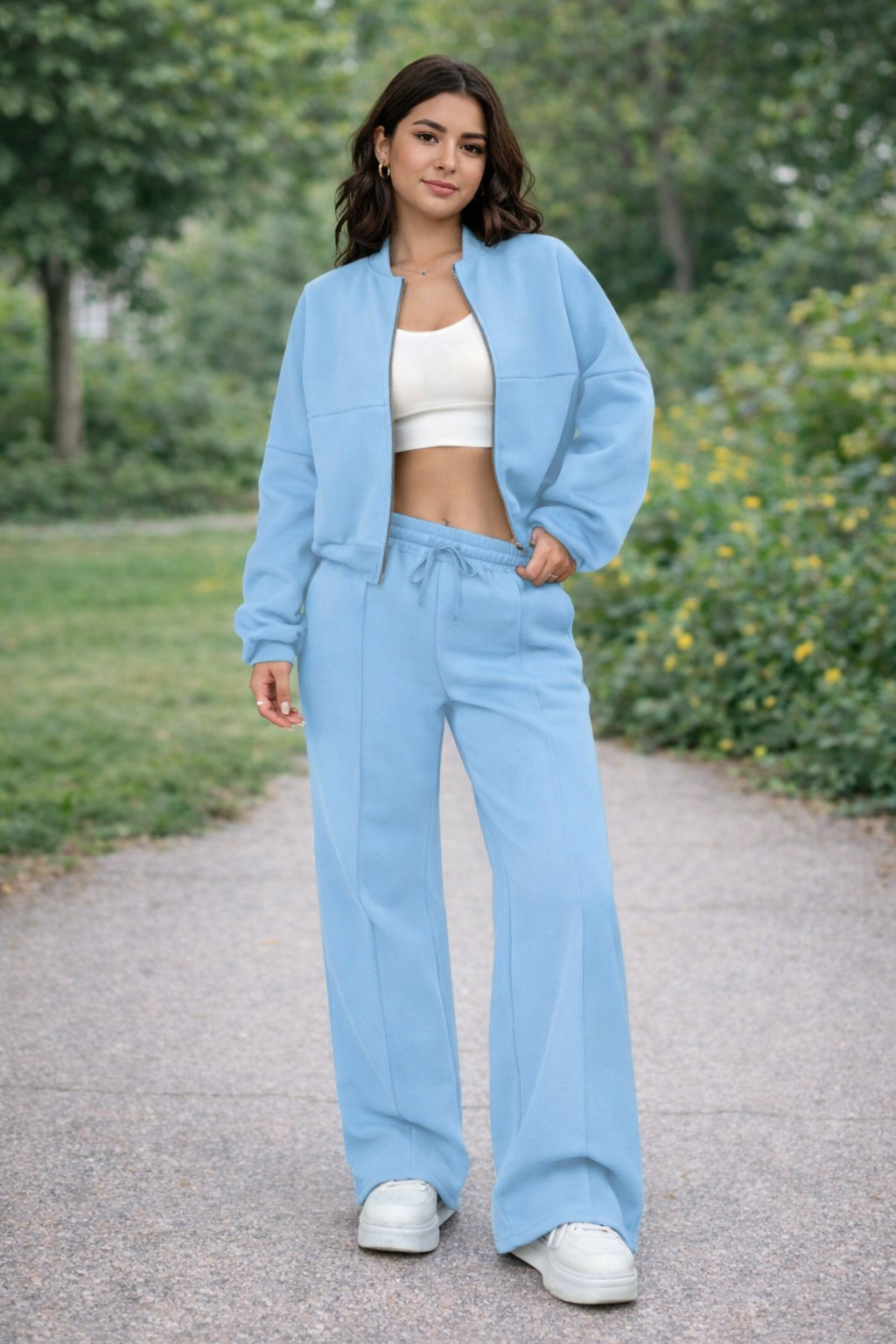 Set sport Cristina - Jachetă cu fermoar și pantaloni cu croi larg